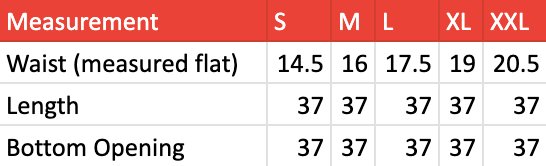 Models are shown wearing the size S. All measurements are shown in inches.
