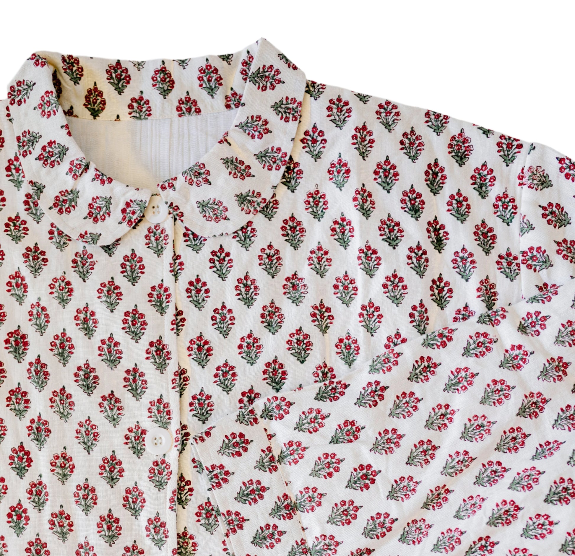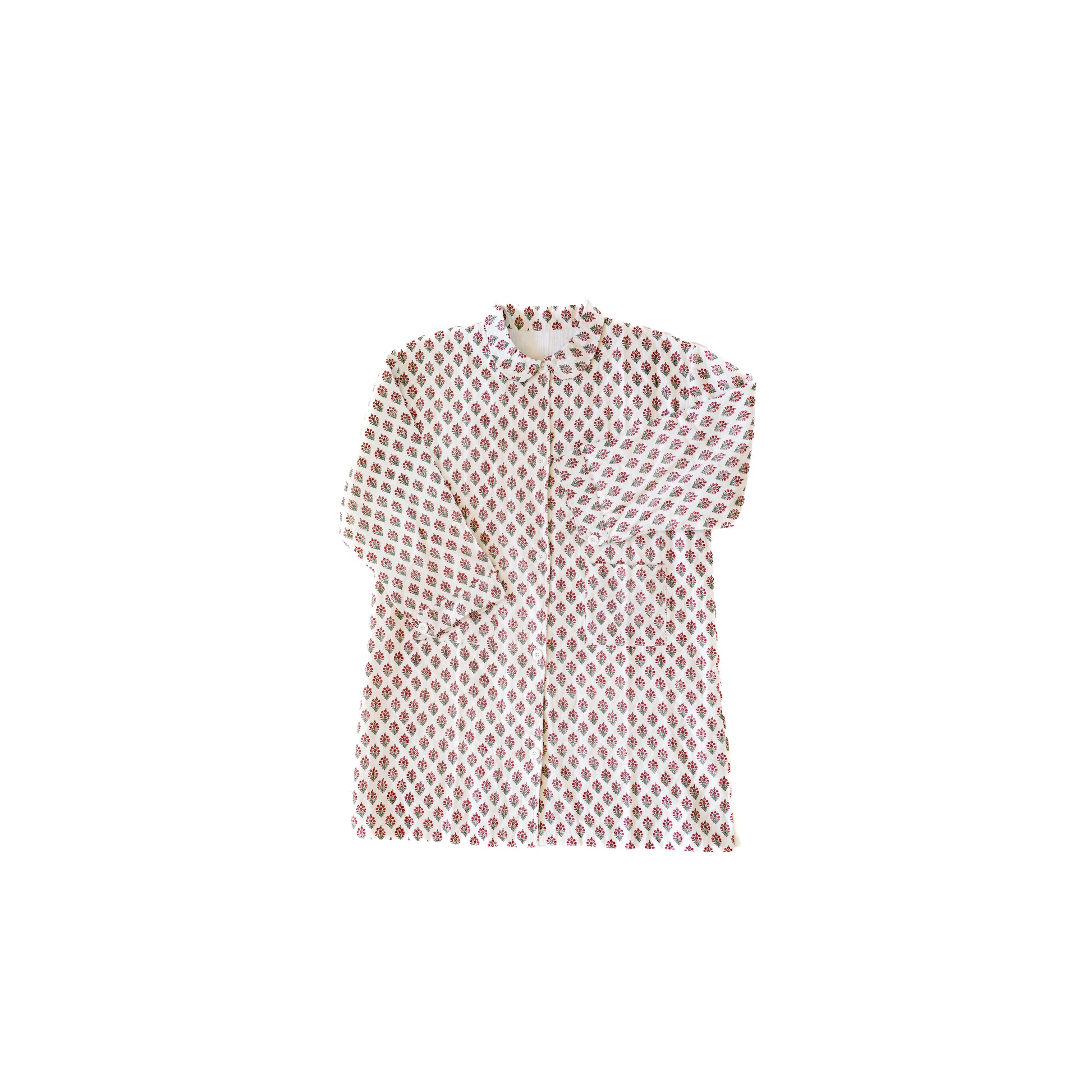 This floral block print dress is a perfect combination of utilitarian and bold. The fabrics were designed in-house in Salt Lake City and printed in a family-owned factory in India.