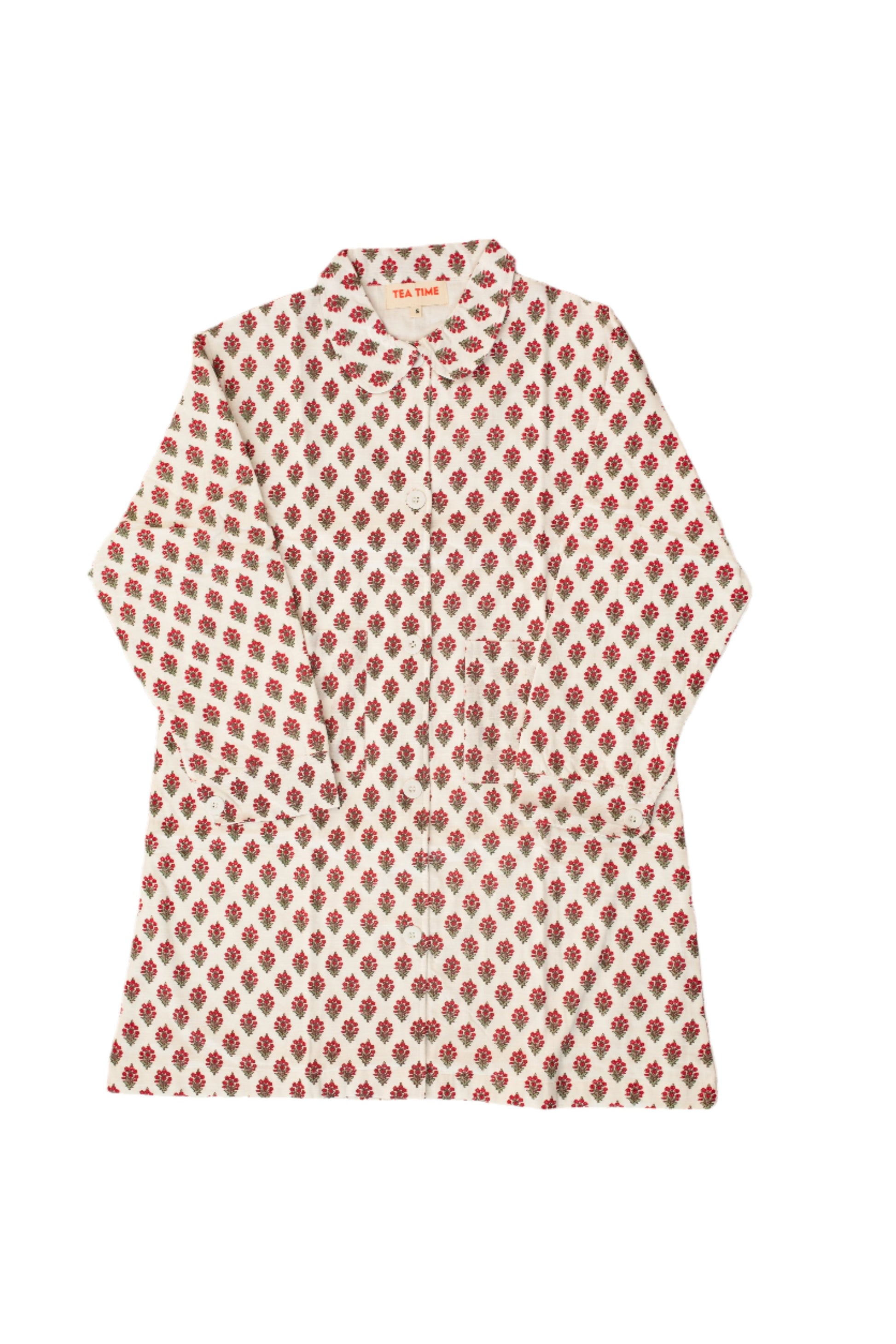 Each dress can be worn as a button-down dress or open as a chore coat in transitional seasons.