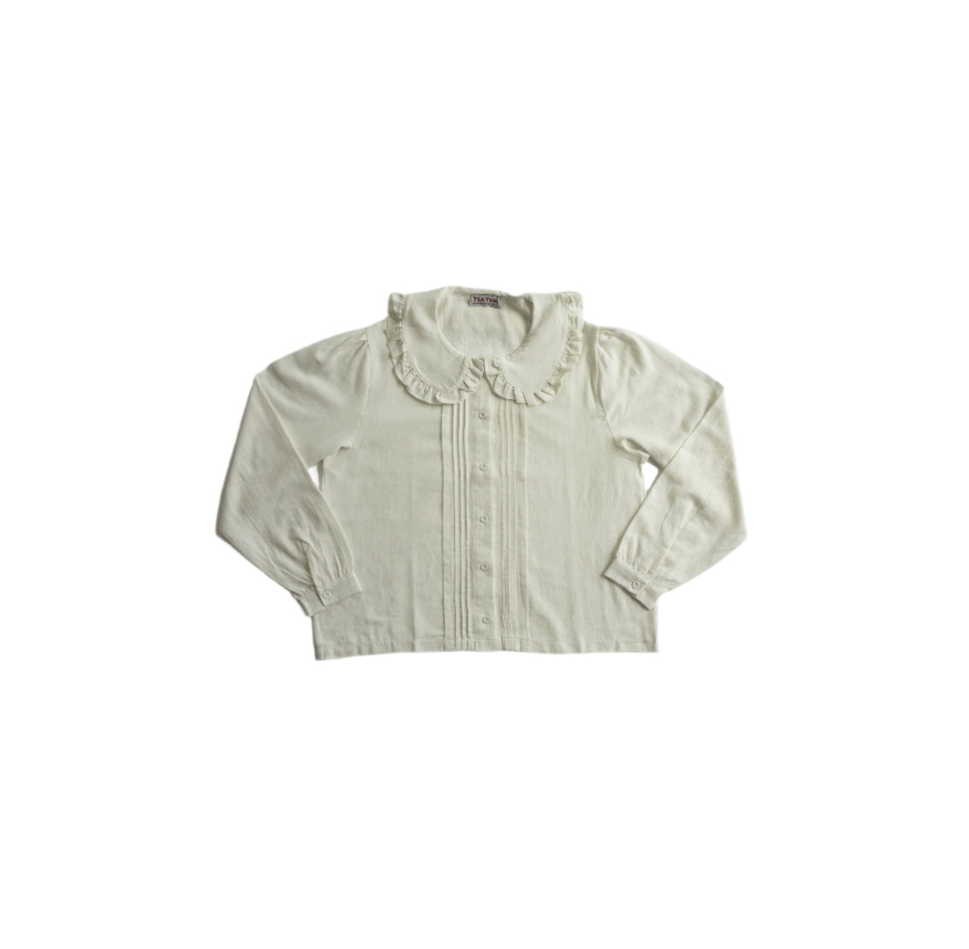 Made from a blend of cotton and linen, this top is both breathable and elegant. The details in the collar and center pleats allow for this piece to dress up any outfit. Its silhouette is designed to carry extra room in the torso and sleeves for a comfortable fit.