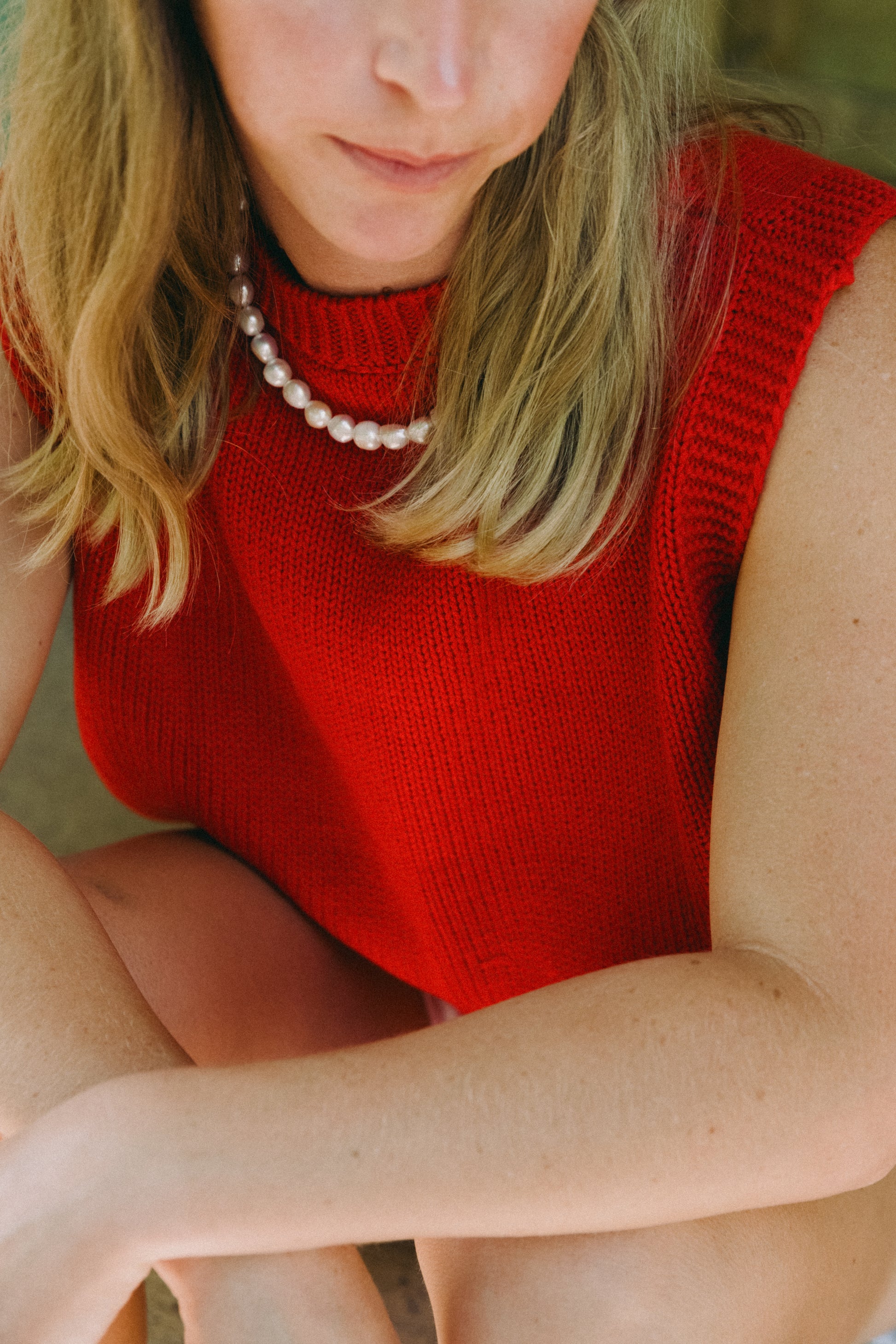 Inspired by the timeless charm of classic knitwear that Pinterest dreams are made of, our Red Sweater Vest is a versatile wardrobe staple that adds a pop of color to any outfit. Whether you're layering it over a crisp t-shirt or a polished blouse, or wearing it on its own for a bold statement, this vest is designed to fit seamlessly into your everyday style.